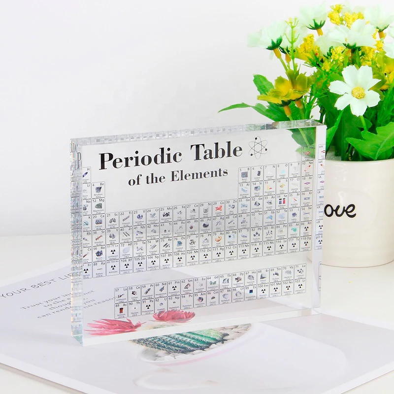 Acrylic Periodic Table Display With Real Elements Kids Teaching School Day Birthday Gifts Chemical Element Display Home Decor
