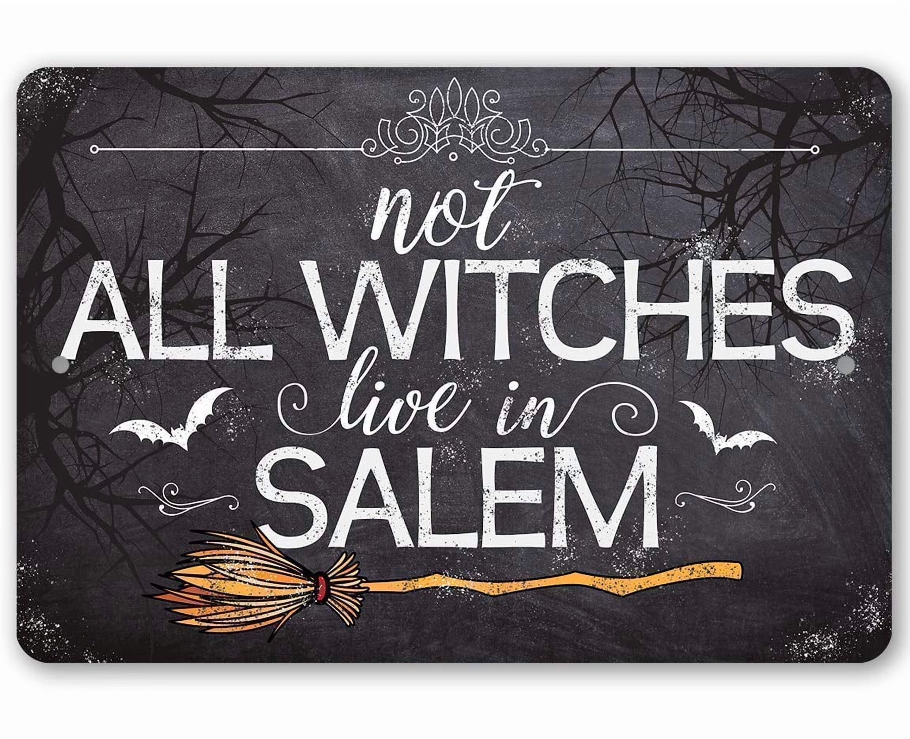 Not All Witches Live in Salem - Durable Metal Sign for Indoor/Outdoor Use - Perfect Witchy Halloween Decoration & Gift Under $15 (8" X 12")
