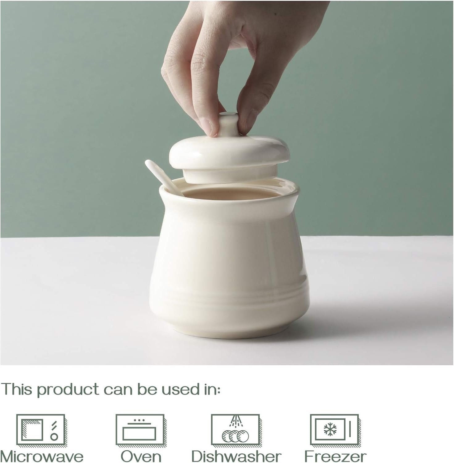 • Easy to Clean and Safe for Dishwasher & Freeze -- Made from pro-grade porcelain, this elegant sugar jar can be easily cleaned either by hand or in a dishwasher, ensuring effortless maintenance. It is also safe for use in the microwave, oven, and freezer, making it a versatile addition to your kitchen.