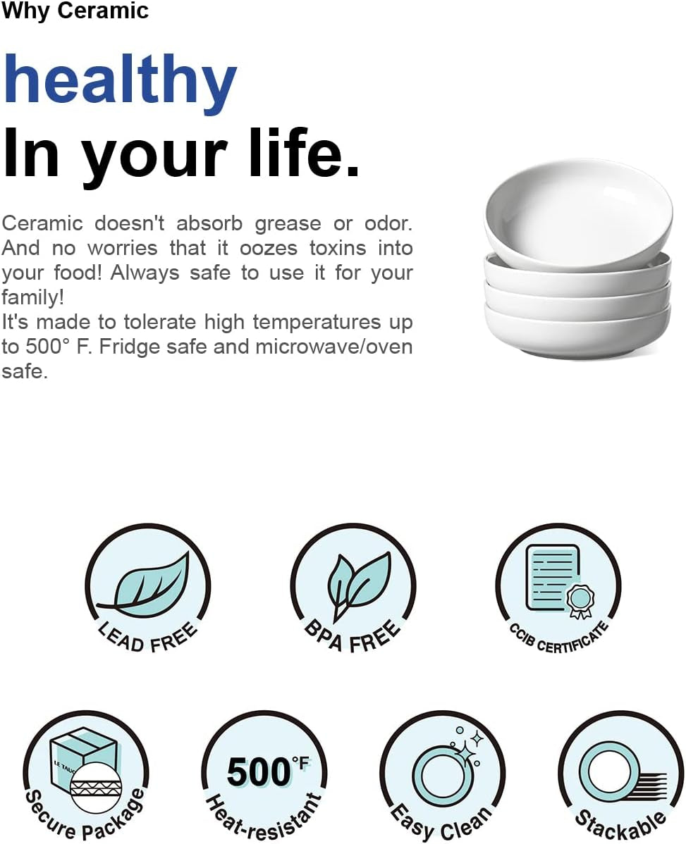 • Generous Capacity: With a diameter of 8.5 inches and a depth of 2.4 inches, these pasta bowls easily accommodate a normal capacity of 45oz and can hold up to 50oz at maximum. Perfect for serving salad, pasta, soup, dessert, rice, beans, ice cream, and more, these bowls are versatile enough to meet all your culinary needs. The high edges effectively contain sauces, preventing spills and making them a great alternative to regular plates.