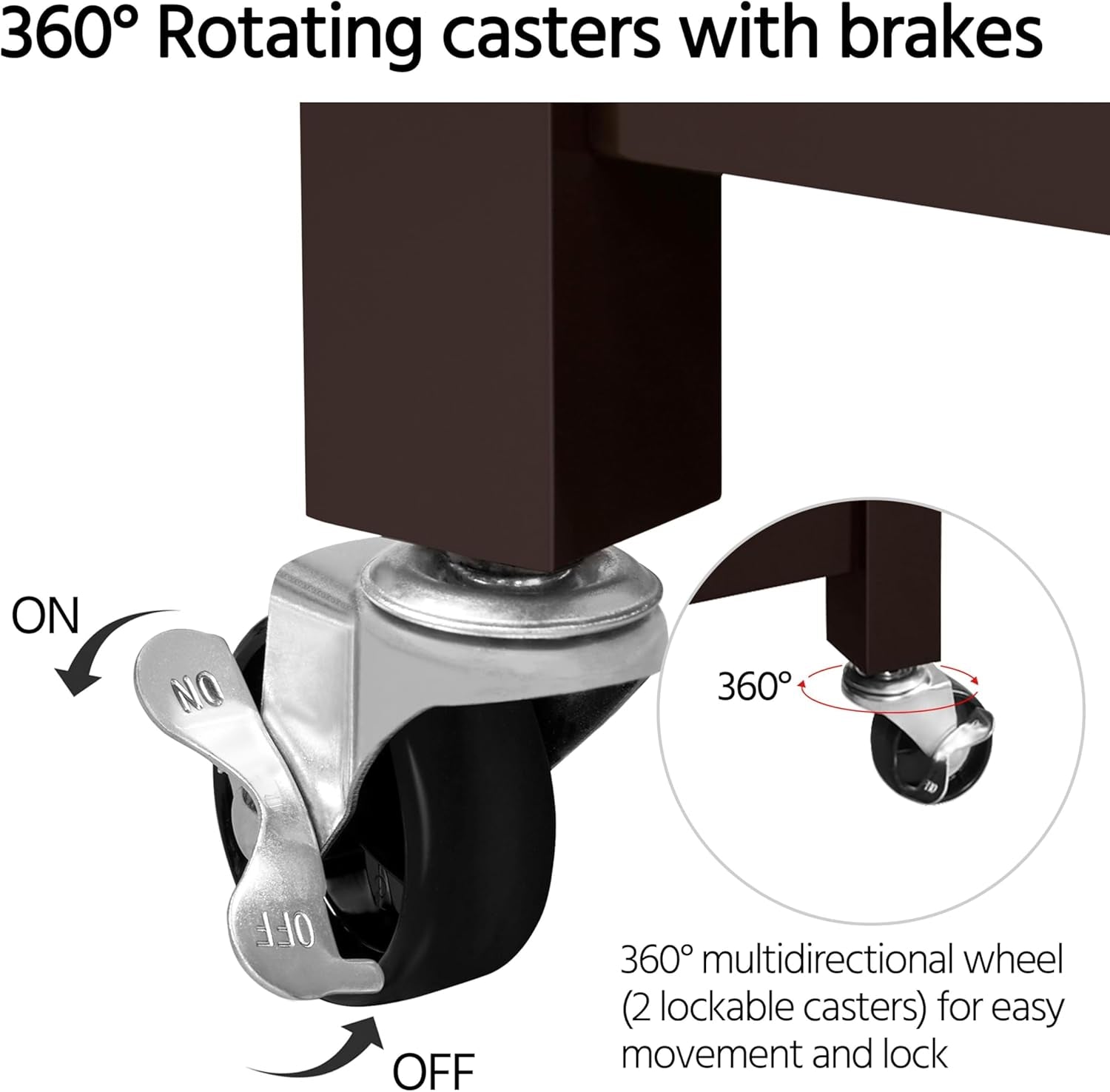 • Experience the convenience of must-have mobility. The four omnidirectional industrial casters allow for swift and effortless movement throughout your home. With two locking casters, you can secure your kitchen cart in place whenever you need stability while working or entertaining.