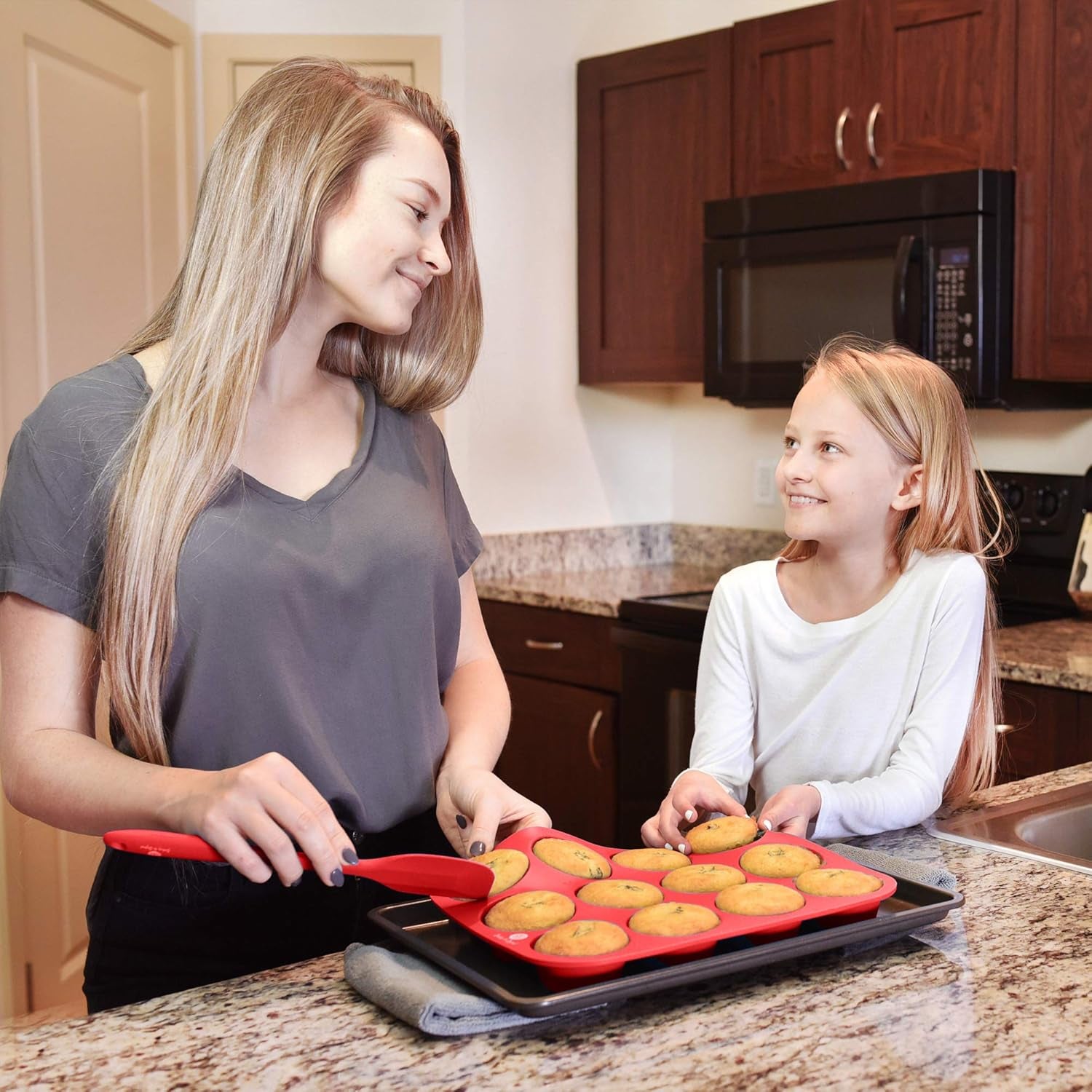- 🍰TRANSFORM YOUR BAKING EXPERIENCE: Elevate your kitchen with our Premium Silicone Muffin Pan set, designed for both amateur bakers and seasoned professionals. This complete collection includes a standard 12 cup Muffin Pan, a 24-cup Mini Cupcake Tray, and 2 top-quality spatulas, enabling you to whip up delightful treats for family gatherings, parties, or any special occasion. Enjoy creating memorable moments as you bake together with your loved ones!