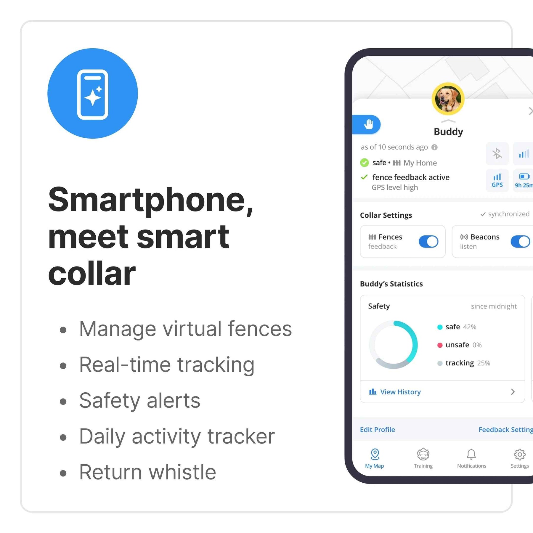 Our Wireless GPS Dog Fence comes loaded with features designed for convenience and ease of use. Its user-friendly app allows you to set geofences in mere minutes, so you can easily monitor your dog's activity. The collar’s lightweight design ensures your pet stays comfortable while exploring their surroundings.