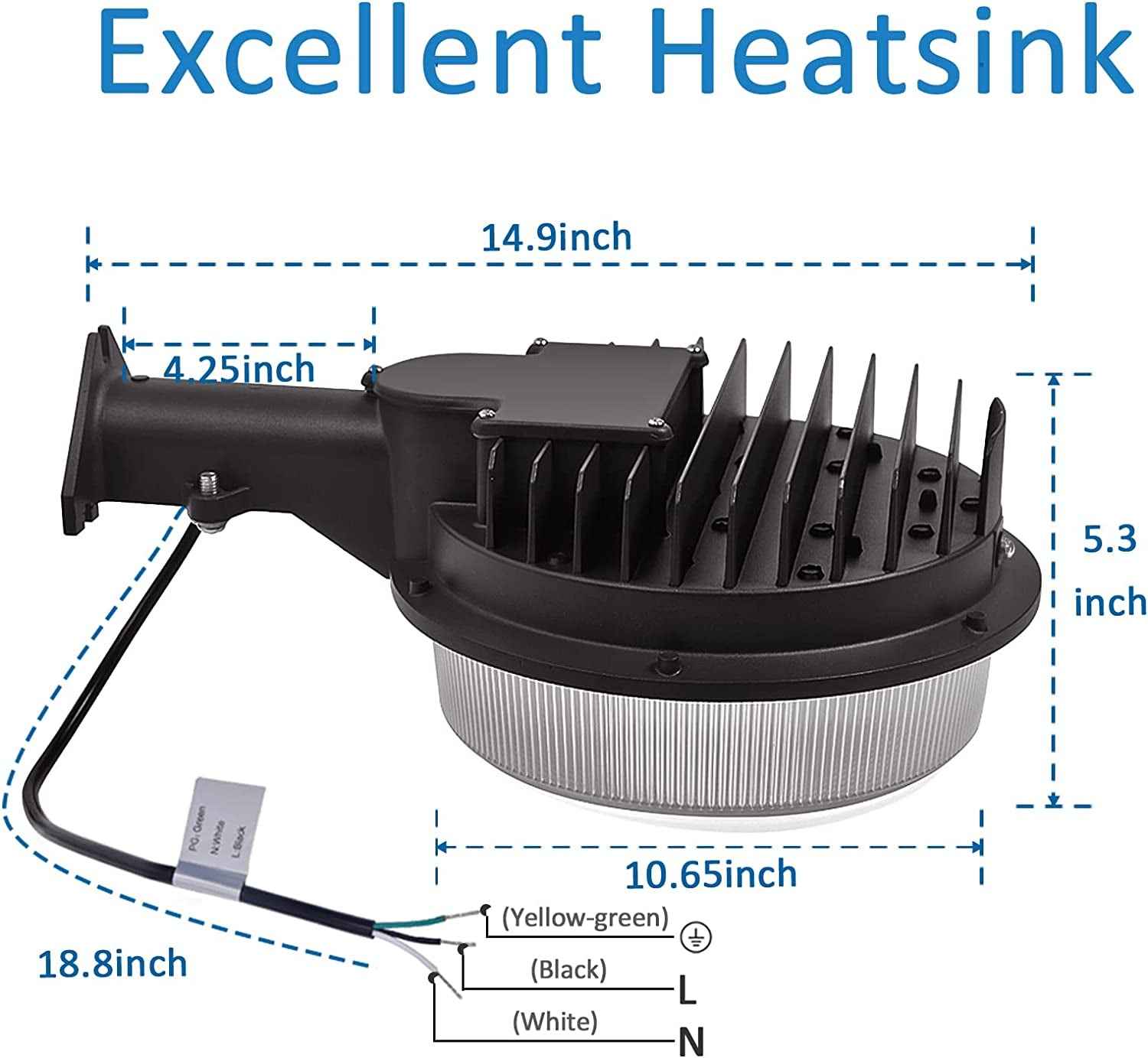Equipped with a sophisticated photocell sensor, this LED barn light automatically turns on at dusk and off at dawn, ensuring you never have to worry about flipping switches again. With a replacement power equivalent of 1200W MH/HPS, the energy efficiency of our LED technology significantly reduces your electricity bills while providing optimal lighting performance.
