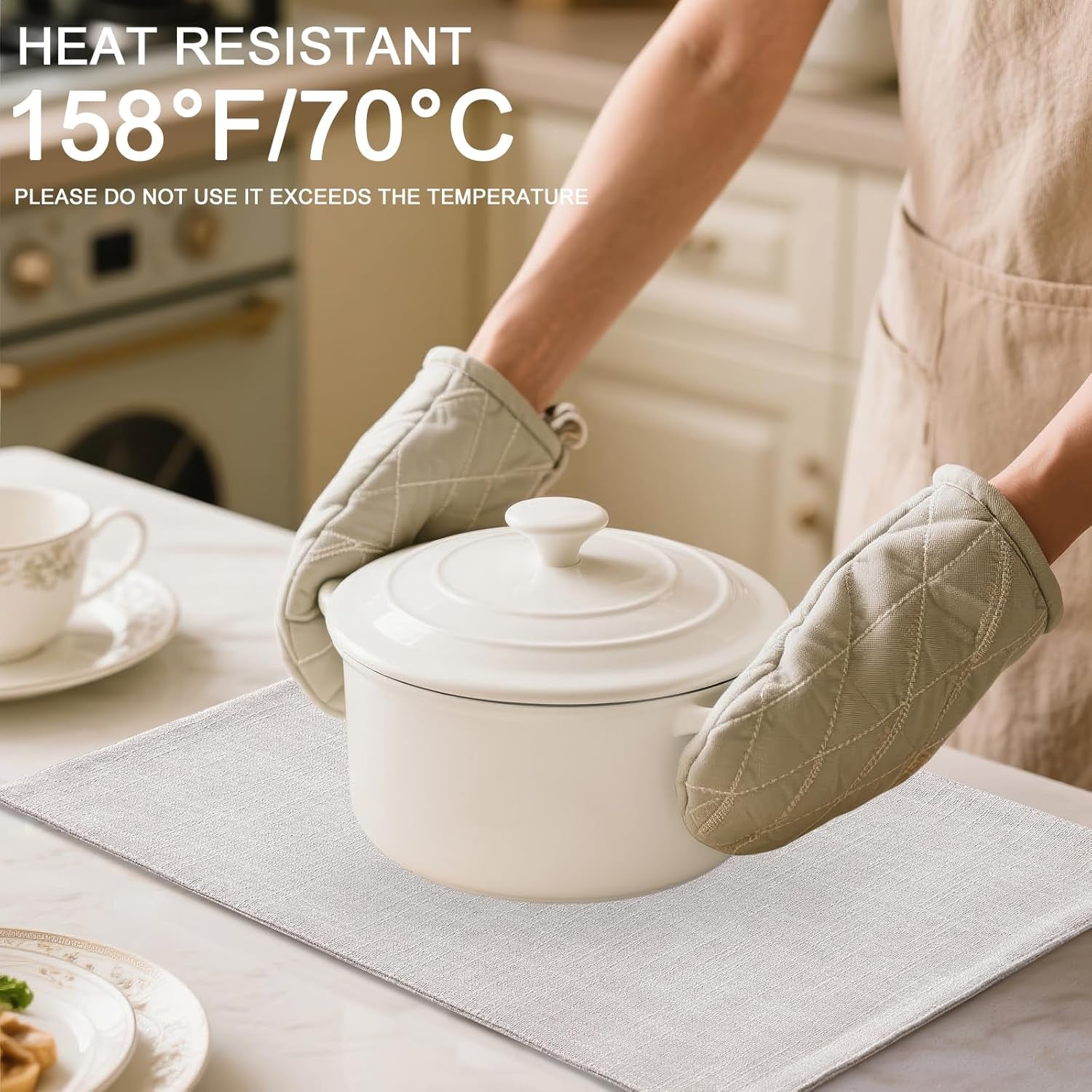 Elegant Beige Cotton Linen Blend Placemats - Set of 6, Heat Resistant & Washable, Perfect for Indoor & Outdoor Dining Decor, 13" x 19