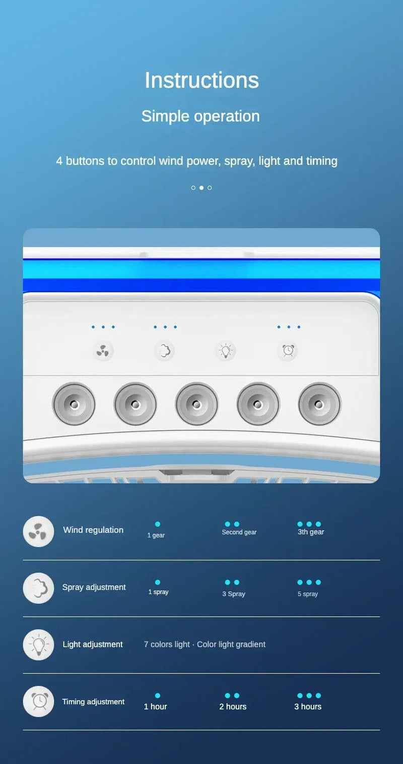 3. Choose your settings: Adjust the fan speed and mist intensity according to your preference.